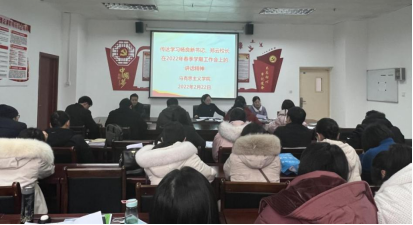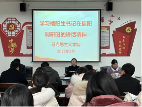 随后,柯涛副院长带领全体教师学习太阳集团tcy8722杨良新书记、郑云校长在2022年春季工作会上的讲话。柯院长提出马院全体教师要聚焦立德树人,持续提升育人水平,着力做好优质教学资源库建设,强化教师参赛,达到“以赛促教、以赛促学、以赛促训”,推动马院高质量发展。