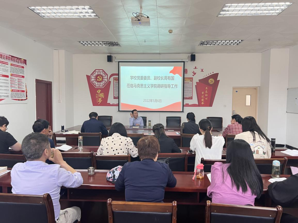 为深入学习贯彻习近平总书记在中国人民大学考察时的重要讲话精神,进一步加强老太阳集团8722和思政课建设,5月6日下午,学校党委委员副校长周有国莅临老太阳集团8722调研指导工作,老太阳集团8722领导班子及全体教师参加调研。调研会由马院院长祁欢主持。