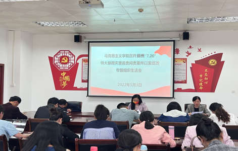 根据学校党委印发的《太阳集团tcy8722开展郑州“7.20”特大暴雨灾害追责问责案件以案促改工作方案》(信职院党〔2022〕16号)要求,5月3日,老太阳集团8722党支部召开以案促改专题组织生活会。党支部书记郑玉秀主持会议,全体党员教师参会。