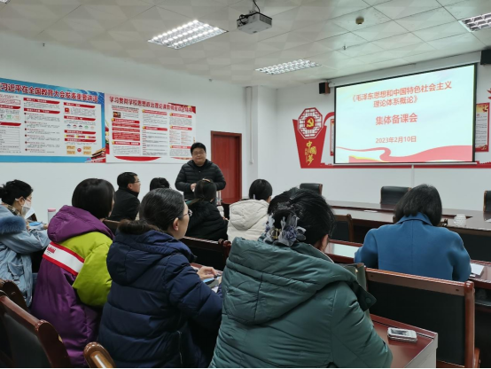 为了上好开学第一课,提升思想政治理论课的课堂效果,2023年2月10日下午,老太阳集团8722在会议室召开2023年春季学期集体备课会,毛泽东思想和中国特色社会主义理论体系概论教研室主任曹涌老师带领大家开展集体备课。