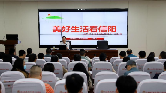 会上,周有国从发展目标、发展方向、发展短板、发展的着力点和支撑点四个方面,结合信阳的发展实际,对“1335”工作布局进行了深刻阐述。周有国结合在市政府工作经历,向与会人员解读了“美好生活看信阳”品牌形象的深刻内涵;围绕信阳城区地理位置解读了打造“鄂豫皖省际区域中心城市”“大别山(豫南)高效生态经济示范区”“长三角产业协同创新区”的重要意义;围绕市委、市政府的一系列举措阐明了信阳在思想观念、营商环境、基层基础取得突破的决心;列举大量案例阐述了信阳在产业绿色崛起、花园城市建造、乡村振兴扛旗、文旅文创出彩、品质生活引领五个方面取得的成效。周有国还对如何造就“美好生活看信阳”品牌形象制定的配套规则体系和组织体系进行全面解读,结合高等职业教育特点,就我校在“美好生活看信阳”品牌打造上如何更好地发挥积极作用提出路径和方法。
