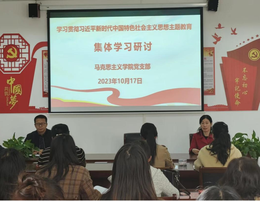 10月17日下午,老太阳集团8722党支部在学院会议室召开学习贯彻习近平新时代中国特色社会主义思想主题教育集体学习研讨会。党支部书记郑玉秀主持会议,全体党员教师参会。