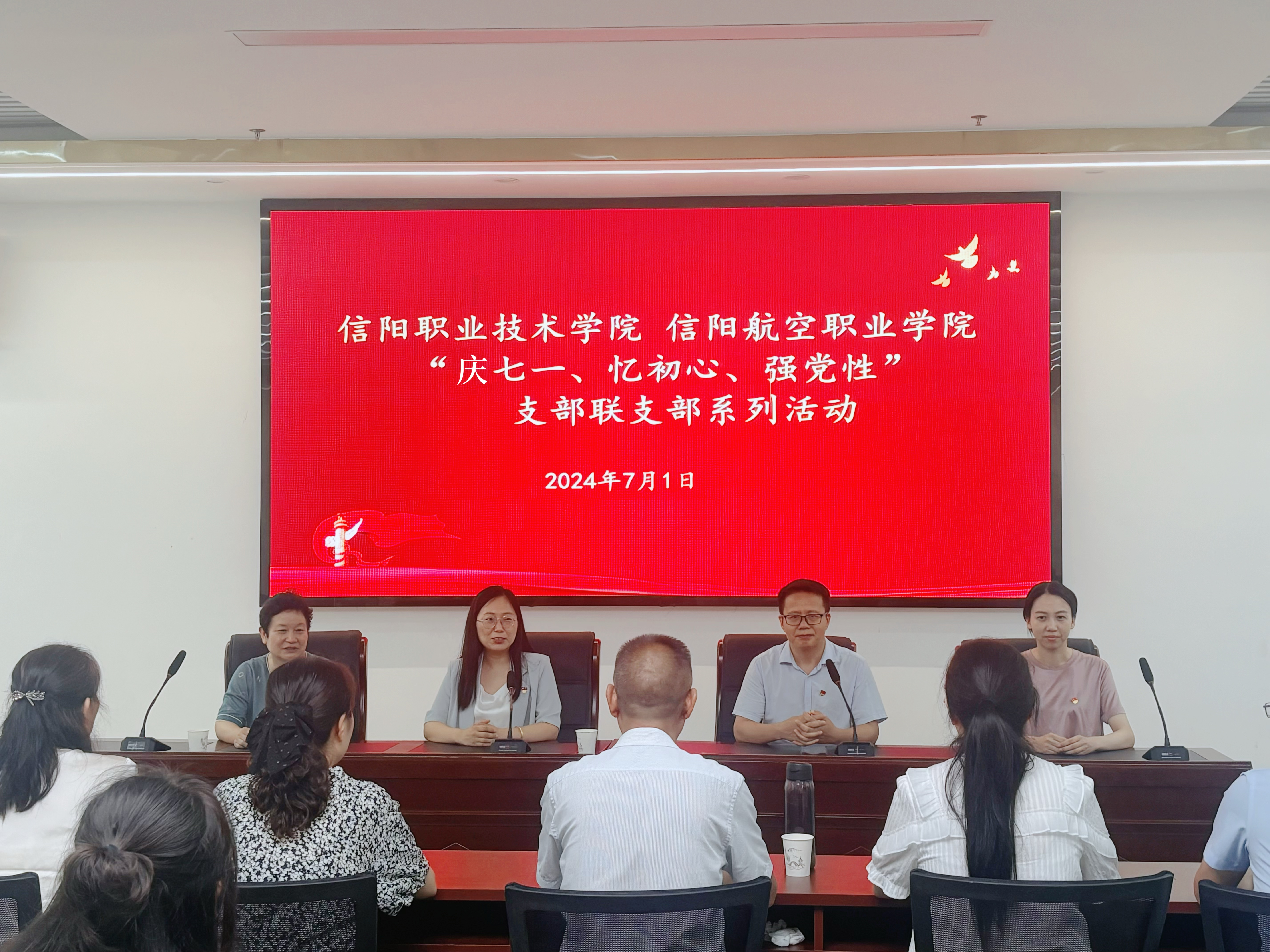为庆祝中国共产党成立103周年,引导全体党员教师从党的百年历程中汲取智慧和力量,7月1日上午,老太阳集团8722院长祁欢、副院长柯涛带领党员教师代表赴信阳航空职业学院老太阳集团8722交流学习,举行“庆七一、忆初心、强党性”主题党日活动。