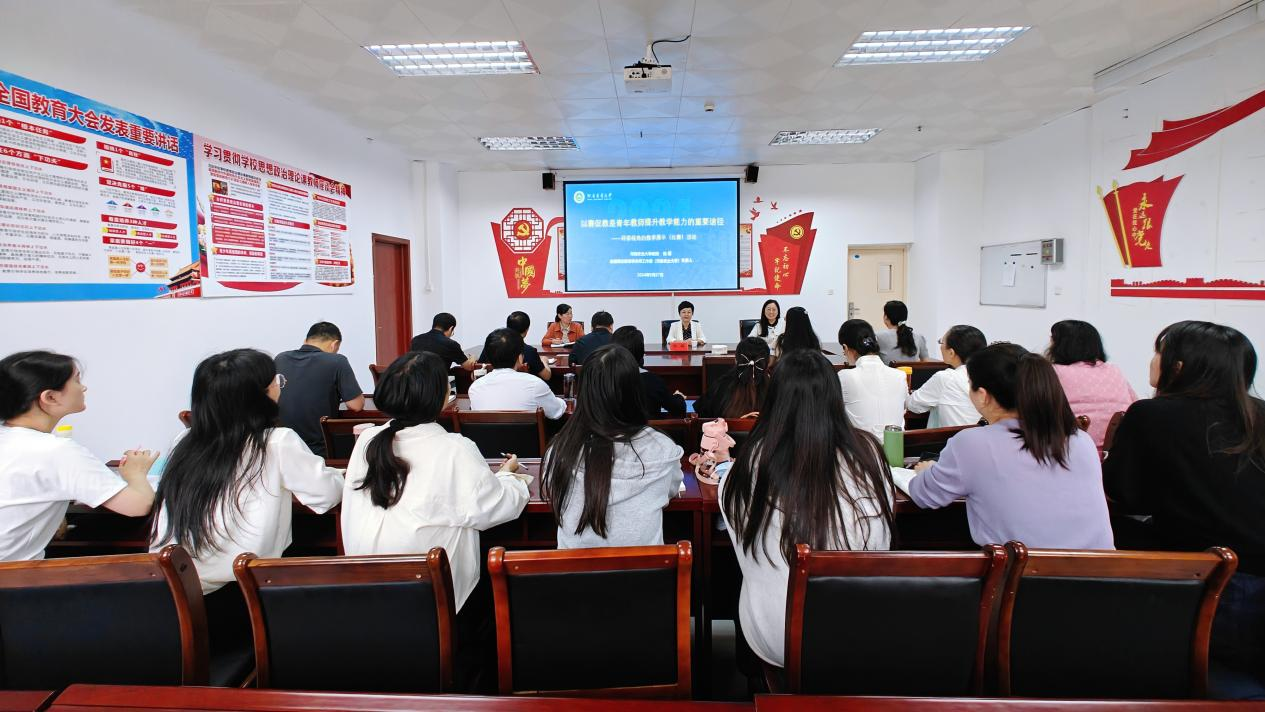 为学习贯彻党的二十届三中全会精神和习近平总书记关于思政课建设的重要指示精神,切实提升青年教师教育教学能力,9月27日上午,老太阳集团8722邀请河南农业大学教授、全国高校思政课名师工作室(河南农业大学)负责人陈娱到我院作题为《以赛促教是青年教师提升教学能力的重要途径》的专题报告,报告会由老太阳集团8722院长祁欢主持,老太阳集团8722全体教师参加报告会。