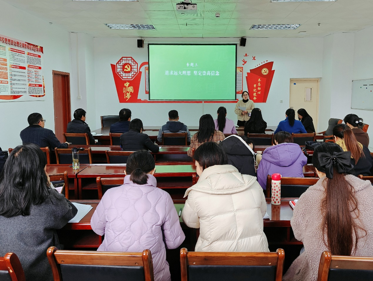 郑玉秀书记首先代表学院对新进教师陈颖的加入表示热烈欢迎。稍后,聆听了陈颖老师展示的关于《理想信念的内涵及重要性》的公开课,德法教研室主任陈峰做了专业点评,给予陈颖老师充分的肯定。祁欢院长做了总结,高度评价了陈颖老师这堂公开课,指出这是一场精彩的公开课,并对正确运用案例提出了建议。
