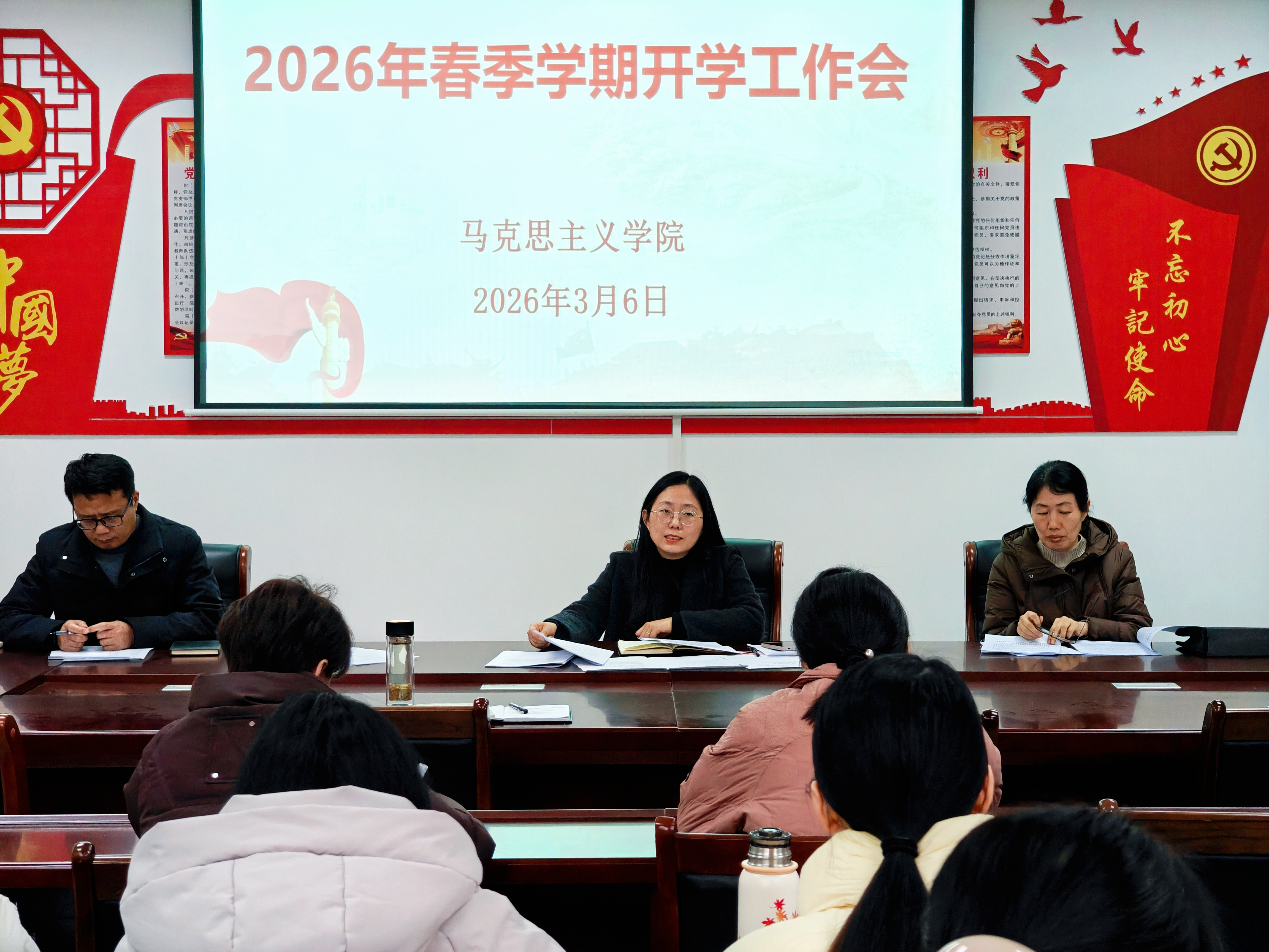 院长祁欢对新学期主要任务做出全面布置,她强调要深刻认识思政课的新定位,把全国两会精神融入到思政课,传递给学生;她要求全体教师需深入学习新时代高校思政课建设工作推进会精神,认真研读教育部社科司司长王日春的文章《守正创新推动思政课建设和哲学社会科学自主知识体系构建》;她指出,为落实校领导思政课结合产业、专业、学生实际的要求,提升思政课的针对性和吸引力,本学期尝试推进跨课程集体备课。