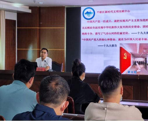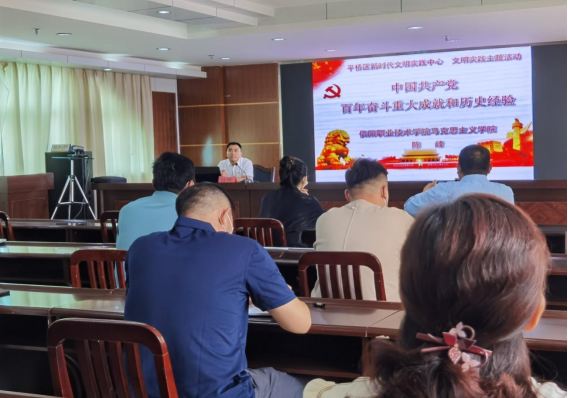 5月27日,马院教师陈峰走进平桥区新时代文明实践中心开展了以《中国共产党百年奋斗重大成就和历史经验》为题的主题宣讲。来自平桥区的各单位代表和社区工作人员到场参加了此次宣讲活动