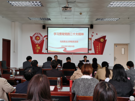 会上,郑玉秀强调学习宣传贯彻党的二十大精神是当前的首要政治任务,要充分认识党的二十大的重大意义,自觉把思想和行动统一到党的二十大精神上来。要深刻把握党的二十大的新部署新要求,深刻领会“两个确立”的决定性意义,进一步增强“四个意识”、坚定“四个自信”,做到“两个维护”,坚持党的绝对领导。切实把党的二十大精神贯彻落实在工作中。她指出,马院是学习研究宣传马克思主义的主阵地,要先学一步、学深一层,迅速掀起学习宣传贯彻党的二十大的热潮。一是把党的二十大精神学深悟透,及时将党的二十大报告融入到思政课教学之中,推动党的创新理论和奋进蓝图进课堂、进学生头脑;二是要充分发挥专业优势,加强对党的二十大报告的研究阐释,力争推出一批有分量、有影响力、高水平的理论研究成果;三是要认真做好党的二十大精神的宣讲工作。马院将结合上级指示精神,研究制定马院学习宣传贯彻党的二十大精神工作方案,全面推进理论学习和宣讲活动,不断将学习宣传工作引向深入。