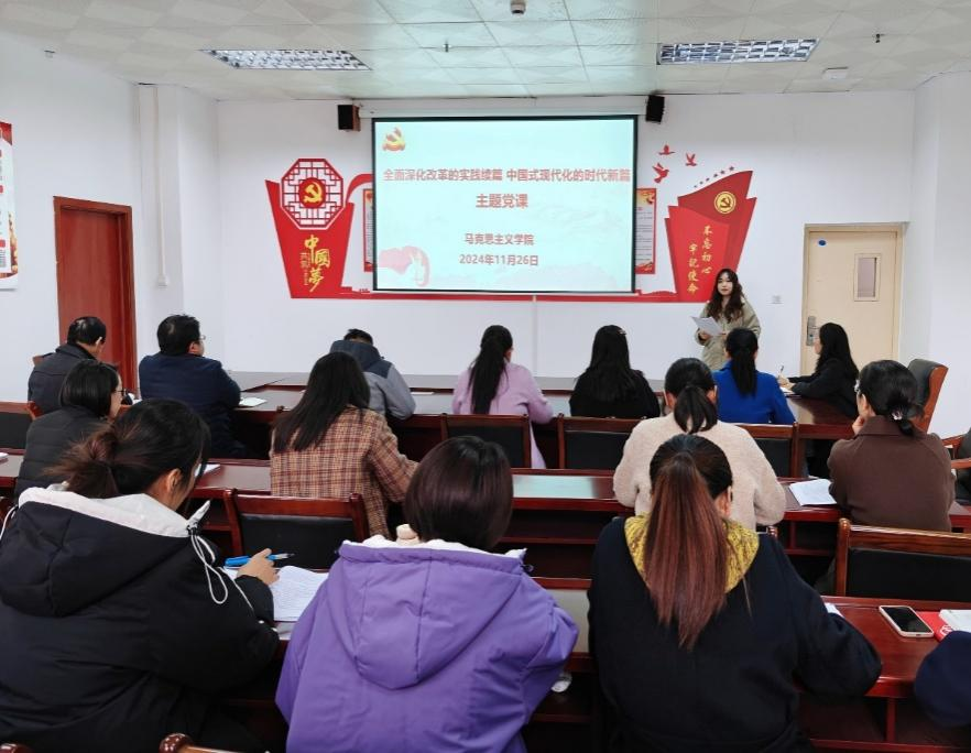 为深入学习贯彻党的二十届三中全会精神,深刻理解全面深化改革、推进中国式现代化的深刻内涵,老太阳集团8722党支部于11月26日在学院会议室开展专题党课学习活动。本次活动由学院党支部书记郑玉秀主持,马院全体党员教师参加。