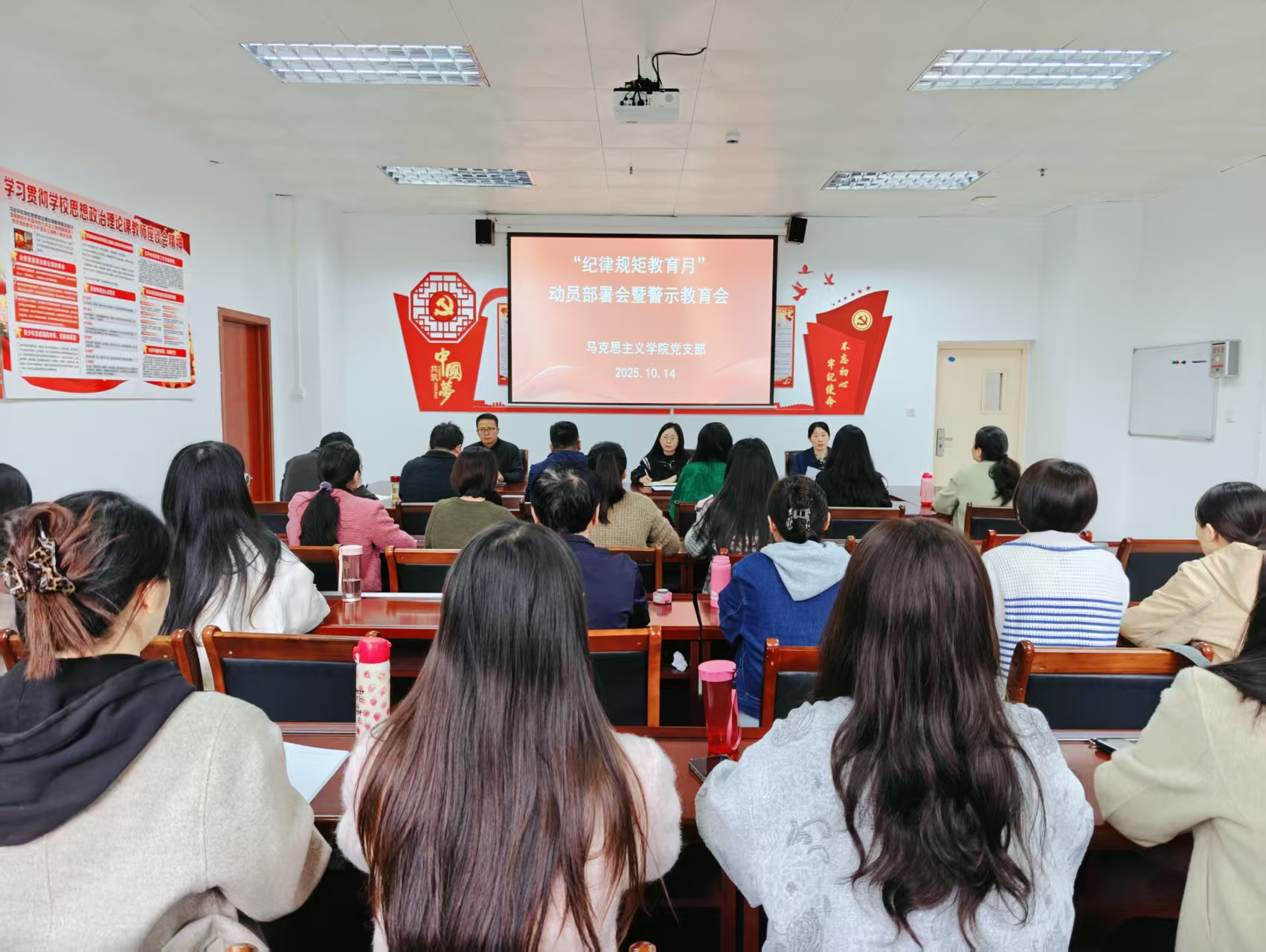 2025年10月14日下午,老太阳集团8722党支部在学院会议室召开“纪律规矩教育月”动员部署会暨警示教育会。学院全体党员同志参会,会议由党支部书记郑玉秀主持。